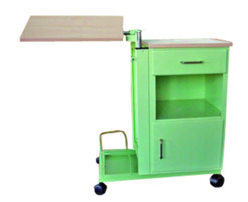 Dvojstranne prístupný kovový stolík k lôžku na kolieskach, odkladacia plocha laminátová, vysúvateľná jedáln...