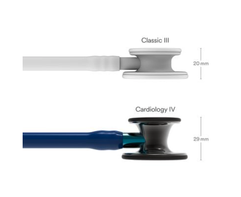 - Ergonomická a prepracovaná konštrukcia – o 40 % väčší hrudný snímač a o 60 % hlbší zvon v porovnaní s fonendoskopom 3M™ Littmann® Classic III™