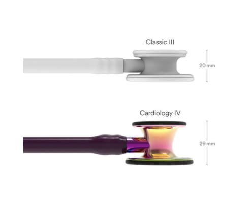 - Ergonomická a prepracovaná konštrukcia – o 40 % väčší hrudný snímač a o 60 % hlbší zvon v porovnaní s fonendoskopom 3M™ Littmann® Classic III™