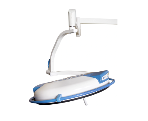 - Dve rukoväte - sterilná rukoväť umožňuje zaostrovanie svetelnej stopy. Nesterilné rukoväť obklopuje kopulu vo viac ako 75% obvodu, ktorá poskytuje nezávislý prístup a robí umiestnenie veľmi jednoduchým.