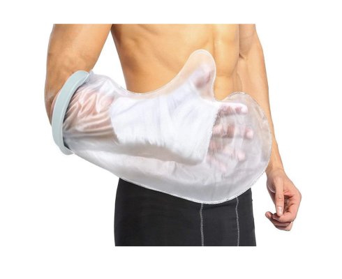 Sprchovací návlek na ruku z priehľadnej plastovej fólie je praktická pomôcka, ktorá chráni sadru, obväzy al...