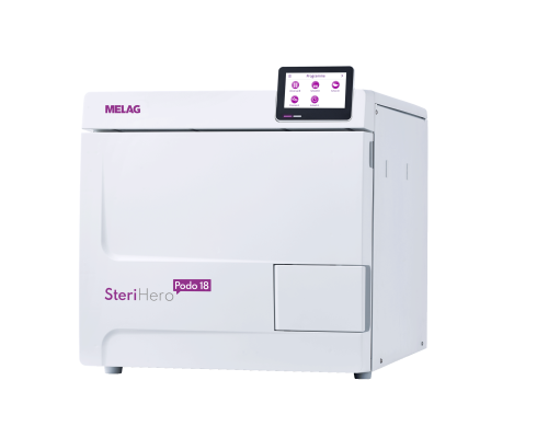 Bez ohľadu na to, aké úlohy vám deň prinesie, SteriHero Podo 18 vám kryje chrbát. Pretože úplne nový samostatný autokláv triedy B spĺňa požiadavky ako zdravotnícka pomôcka a je dokonale prispôsobený pre pedikúru: od funkcií po cenu! Výkonné technológie, intuitívny inteligentný dotykový displej a jedinečná kvalita MELAG – vyrobené v Nemecku, vám dávajú superschopnosť zmeniť všetko!