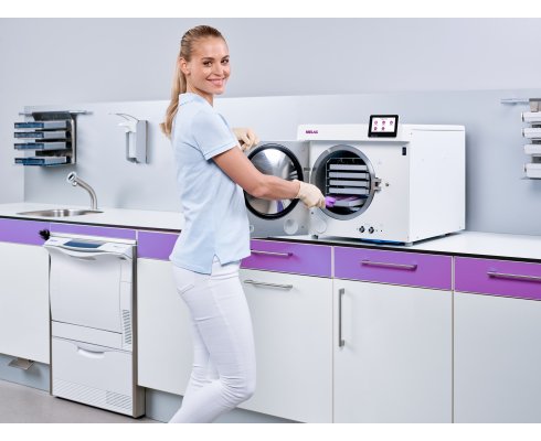 Maximálna bezpečnosť pre vašich zákazníkov a pacientov: Autokláv triedy B ponúka najbezpečnejšiu sterilizáciu všetkých zabalených a nezabalených nástrojov frakcionovaným vákuovým procesom v súlade s EN 13060 – bez ohľadu na typ a zložitosť.