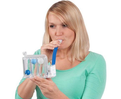 Jednoduché, praktické zariadenie na precvičovanie pľúc po operácii.